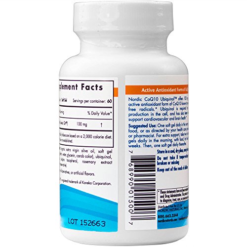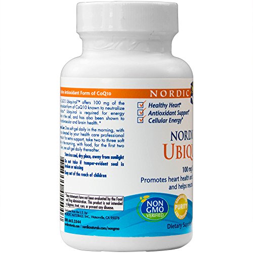 -. Binding : Health and Beauty -. Brand : Nordic Naturals -. Department : Health and personal care -. EAN : 0768990076008 -. Feature : 100 mg coenzyme Q10 (CoQ10) ubiquinol in extra virgin olive oil / Promotes cardiovascular health / Supports cellular energy production health / Neutralizes free radicals -. IsAdultProduct : 0 -. Label : SETAF -. LegalDisclaimer : Actual product packaging and materials may contain more and different information than what is shown on our website. We recommend that you do not rely solely on the information presented and that you always read labels, warnings, and directions before using or consuming a product. Please see our full disclaimer below. -. Manufacturer : SETAF -. Model : 768990015007 -. MPN : 01500 -. NumberOfItems : 1 -. PackageQuantity : 1 -. PartNumber : 01500 -. ProductGroup : Health and Beauty -. ProductTypeName : HEALTH_PERSONAL_CARE -. PublicationDate : 2015-05-28 -. Publisher : SETAF -. ReleaseDate : 2015-07-09 -. Size : 60 -. Studio : SETAF -. Title : Nordic Naturals - Nordic CoQ10 Ubiquinol, Promotes Heart Health and Cellular Energy Production, 60 Soft Gels -. UPC : 768990076008