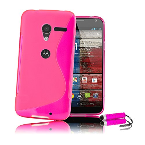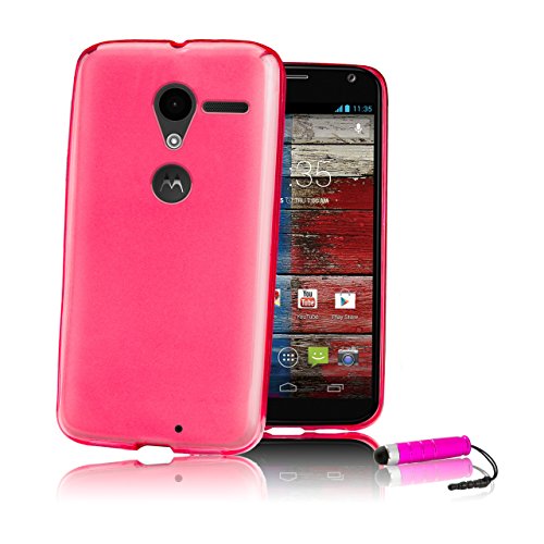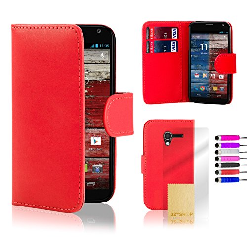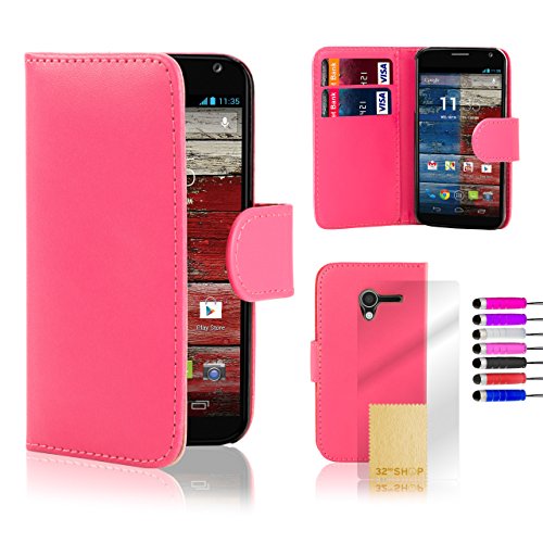 32nd® Book wallet PU leather case cover for Motorola Moto X (2013 edition), including screen protector, cleaning cloth and touch stylus - Hot Pink