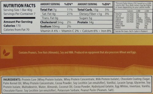 -. Feature : 170 Calories Per Bar / High Protein - 14 grams Per Bar / Lower Fat - 7 grams Per Bar / Low Cholesterol - 5mg / Gluten &Trans Fat Free