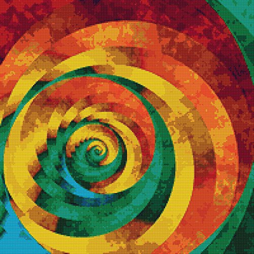 Spiral Staircase Cross Stitch Pattern - Beautiful Rainbow of Colors in the Cross Stitch Design - Fractal Digital Art Style
