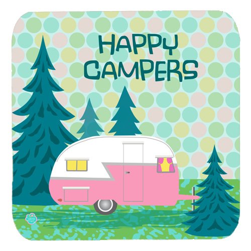 Caroline's Treasures VHA3004FC Happy Campers Glamping Trailer Foam Coasters (Set of 4), 3.5", Multicolor