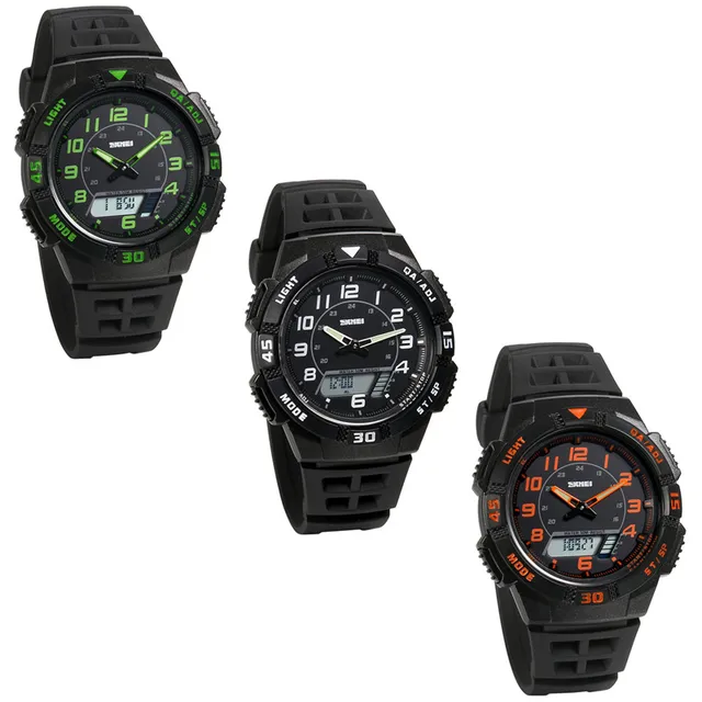 상품 내용 전체 브랜드: Lancardo -시계 카테고리: 남성 -특징: 디지털 시계, 플라스틱 시계; 주도 시계 듀얼 디스플레이 아날로그; 50 메터 방수 다이얼 운동 유형: 디지털/석영 디스플레이 유형: 그림 + 포인터 다이얼 색상: 흰색 + 녹색 + 오렌지 밴드 밴드 materal: 플라스틱 -버클 유형: 핀 버클 밴드 색상: 블랙 무게 -시계 길이입니다: 25 센치메터 다이얼 직경: 약 4.0 센치메터 다이얼 두께: 약 1.3 센치메터 밴드 폭: 약 1.8 센치메터 -시계 무게: 약 37 그램 Lancardo 남성 스포츠 야외 방수 패션 캐주얼 듀얼 디스플레이 군사 대형 남자 석영 시계