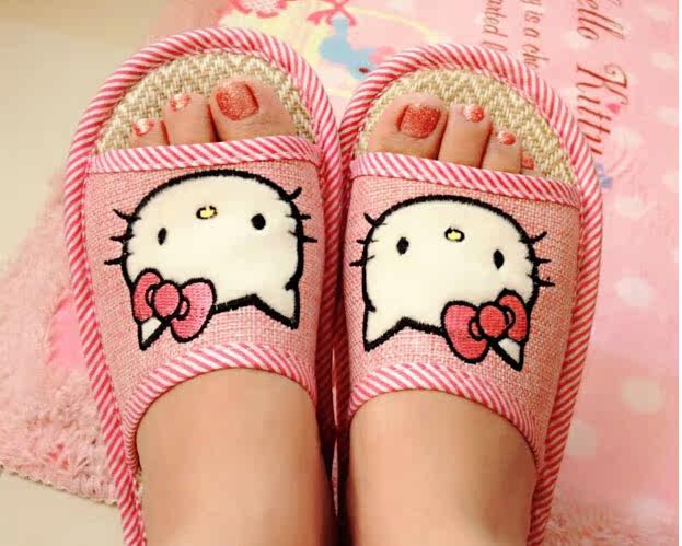 Lovely KT cat to slip home linen slippers, is your essential home cute slippers Oh!