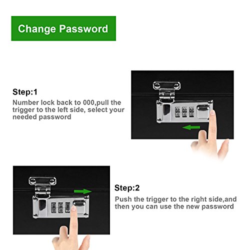With Combination lock that is easy to use and safer with the Jewelry locked up and out of sight from the kids.Three password lockable design, security protection of jewelry, privacy protection. Initial Password: 000 ***When you set up your password, Please write down the password, Remind memorize.