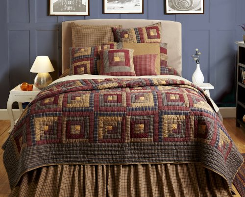 Studio : VHC Brands Publisher : VHC Brands Binding : Kitchen Product Description The Millsboro Queen Quilt features a vintage log cabin patchwork design with contrasting colors of navy, burgundy, and tan, finished with a navy plaid border. 100% cotton and hand-quilting make this an heirloom quality quilt you will be proud to hand down. FEATURES ? Stitch in the ditch hand-quilting ? Featuring log cabin blocks in burgundy, rust, navy and tan ? blocks are arranged to give an eye catching, diagonal stripe effect to the quilt. ? Straight edge with .5" navy and tan ditsy print binding ? Reverses to navy and tan ditsy print fabric ? Hand-quilted, Machine pieced ? Patchwork SPECIFICATIONS ? Dimensions: L94"xW94" ? Weight: 6.3 lb ? Material: 100% cotton shell, 100% cotton batting ? Colors: burgundy, khaki, navy ? Manufacturer Country: India CARE ? Machine wash separately, front load commercial washer ? Cold water, gentle cycle, no chlorine bleach ? Do not tumble dry ? Do not dry clean without first testing a small portion ? This product may not withstand commercial cleaning chemicals or process due to the fragility of fabrics and handmade nature. SIZES AVAILABLE ? Luxury King - Weight: 10.5 lb; Dimensions: L105"xW120" ? Twin - Weight: 4.6 lb; Dimensions: L90"xW70" ? Queen - Weight: 6.3 lb; Dimensions: L94"xW94" ? King - Weight: 7.5 lb; Dimensions: L97"xW110" 0