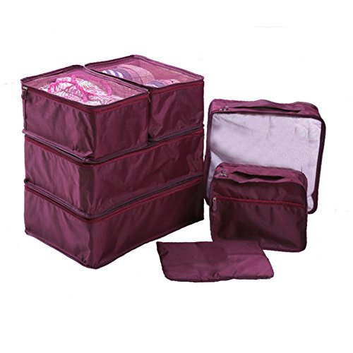 Ewparts 7 in 1 Luggage Travel Organizer Packing Compression Pouches with Shoe Bag &Cosmetics Travel Bag (Dark red)
