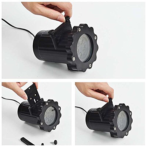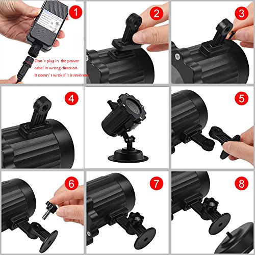 - ★【USER-FRIENDLY】 Comes with a base and a ground stake. The projection light can be put on the flat or fixed to wall by screw, or plug into the ground. In order to provide you much better experience, we extend the wire length up to 5M(Outdoor/Indoor Use). Note: Don`t plug in the power cable in wrong direction. It doesn`t work if it is reversed, find the picture`s detail.