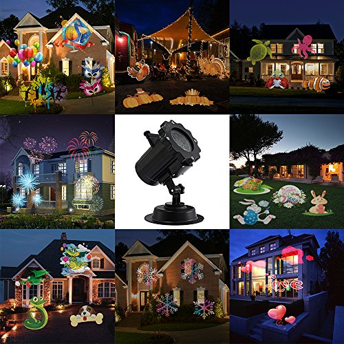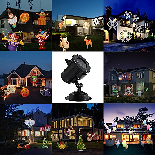 Makibes Led Christmas Light Projector, Upgraded 16pcs Pattern Seasonal Slides IP65 Waterproof Landscape Motion Projector for Halloween Christmas Holiday Wedding Festival Party Decoration