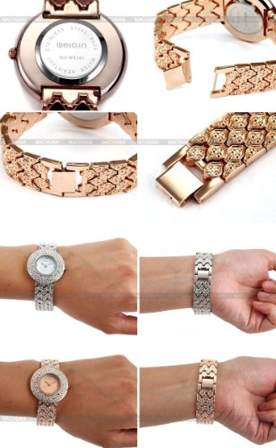 -. Feature : - 100% brand new and high quality. / -Fashionable, very charming for all occasions., - Precise Quartz movement for accurate time keeping. / - Daily water resistance (not for showering and swimming) / -Rose gold bracelet decorated with clear crystals. / -Best gift for your clients, colleagues, schoolmates and friends!,