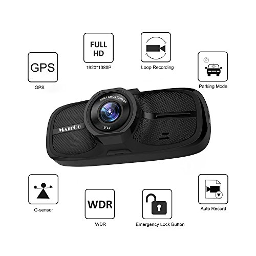 Matego Dash Camera with GPS 1080P FHD Dash Cam Car Camera with Night Vision 170 Degree Viewing Angle Lens 2.7 Inch LCD Screen G-Sensor