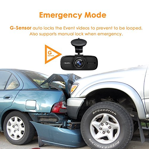 Automatic car accident detection feature (G-Sensor Tech) which locks video file to memory. Ensures you have the important data recorded onto your memory card. Supports micro SD cards (up to 32GB)