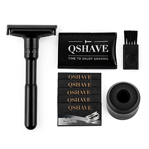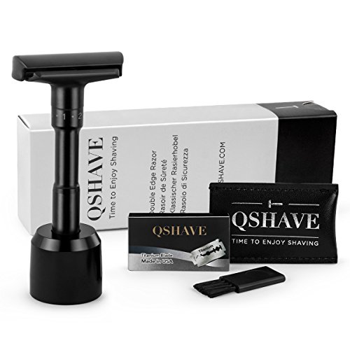 QSHAVE Adjustable Double Edge Safety Shaving Razor Deluxe Set (Razor with Stand)