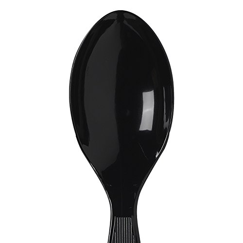 Black plastic teaspoon coordinates with other black utensils and many tableware designs and decorations