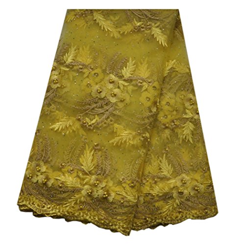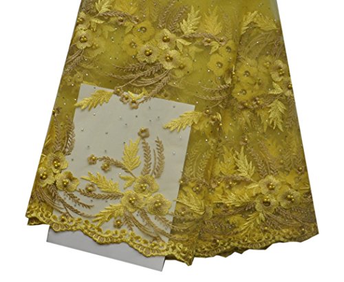 SanVera17 African Lace Net Fabrics Nigerian French Fabric Embroidered and Beading Guipure Cord Lace for Party Wedding (yellow) 5 Yards us-fabric-046-2