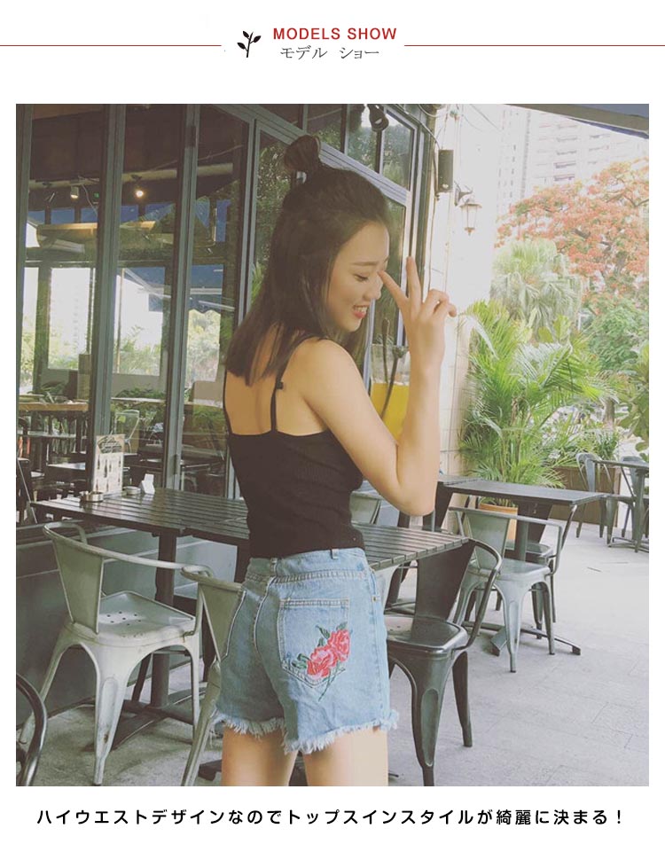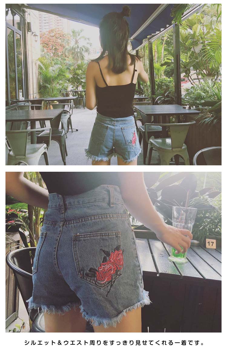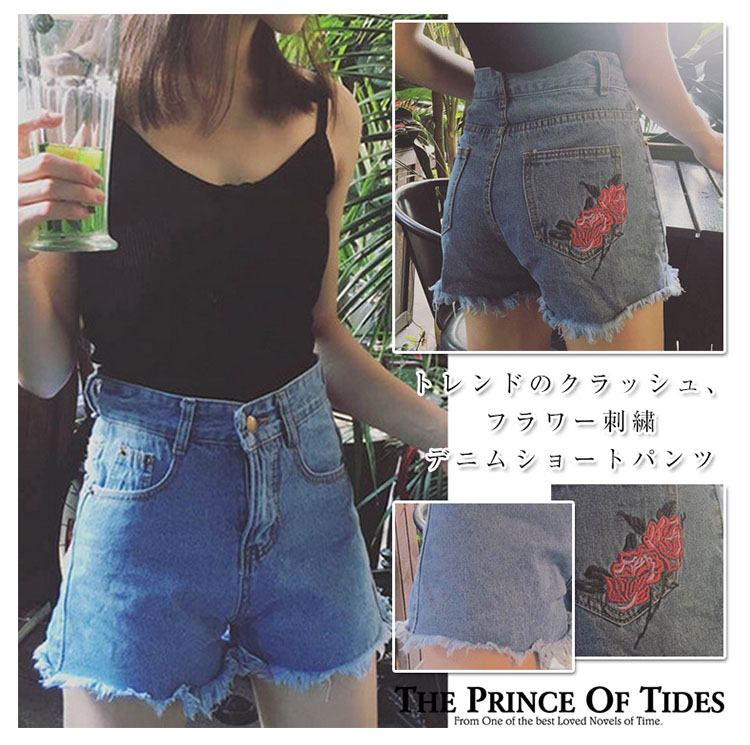| トレンドのクラッシュ、フラワー刺繍デニムショートパンツ。ハイウエストデザインなのでトップスインスタイルが綺麗に決まる!シルエット&ウエスト周りをすっきり見せてくれる一着です。裾周りを広くデザインしているので、脚長&細脚見せ効果も◎。バックポケットにフラワーもコーデのアクセントになりそう。ベーシックなTシャツはもちろん、甘めのブラウスと合わせててもOKな、着まわしやすい1着です。 | |