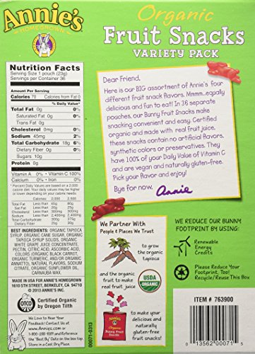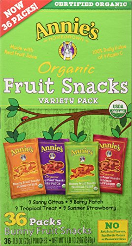 Annie's Homegrown Organic Vegan Fruit Snacks Variety Pack 36 Pouches - .8 Oz. Each