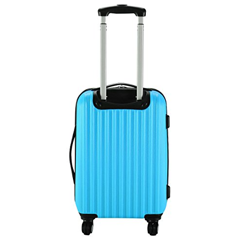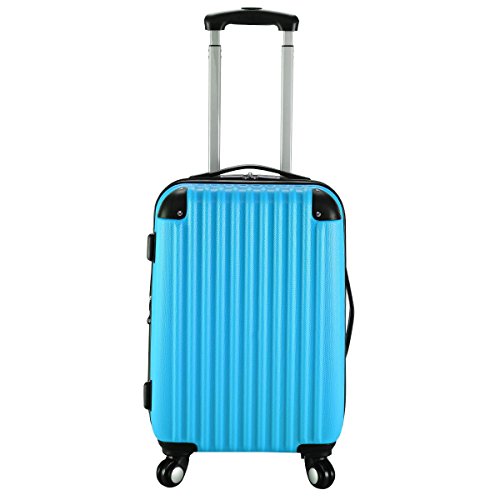 Product Description This is our brand new and modern 20" trolley suitcase which is constructed from lightweight ABS material and features an embossed scratch-resistance shell, a heavy duty handle and 4-wheel spinner for effortless moving. Inside the suitcase, there is elastic tie straps to minimize shifting your contents and a zipper divider to create two separate interior compartments. Take This trolley suitcase, Take Your Pleasure Along The Trip! Feature Brand new and high quality scratch resistance ABS Hard Shell lightweight and durable Ergonomically Designed Push-Button Handles Telescoping Handle Fully-lined interior with elastic ties straps to hold contents in place Interior zippered pocket With 2" (Width) expandable part which offers you larger storage capacity Durable Multi-Directional Wheels, Rotating 360 Degrees Resistant To Dirt, Easy To Clean Up With Rags Specifications Material: ABS Material of handle: Iron Color: Blue Overall dimension: 13" x 9" x 20" Max Height of the handle: about 22.8" Product weight: about 6.6 lbs Package include: 1 x 20" trolley suitcase 0