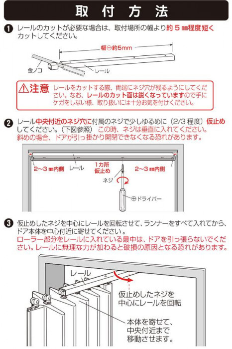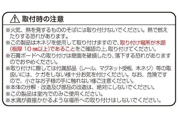 | 付属品 | レール×1本、木ネジ×10本、マグネット受け板×2枚 |