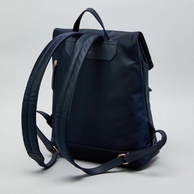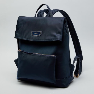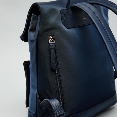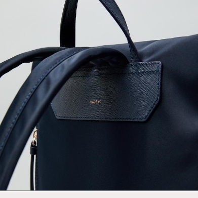 가죽을 배색하고 상단에 오각형의 로고 장식을 매치하여 포인트를 준 백팩입니다.