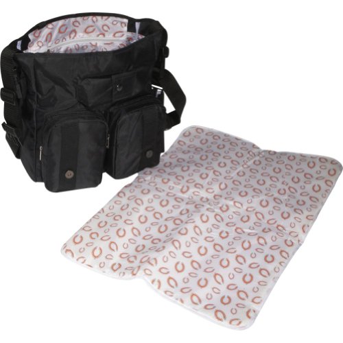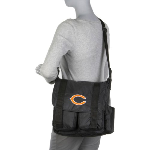 - Feature : New The officially licensed NFL, team logo diaper bag. / The NFL diaper bag comes with a fold up nylon baby changing pad with a repeated team logo pattern. / The front flap has an embroidered team logo. / The team logo print pattern also appears on the inner lining. / Other features: durable webbing, shoulder strap, straps that clip on to stroller, bottle side pocket, a zipper inside pocket, and three pockets under the flap.