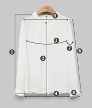 | 尺码 | ①前衣长 | ②后中长 | ③胸围 | ④下摆围 | ⑤肩宽 | ⑥袖长 | ⑦袖臂围 | ⑧袖口围 | ||