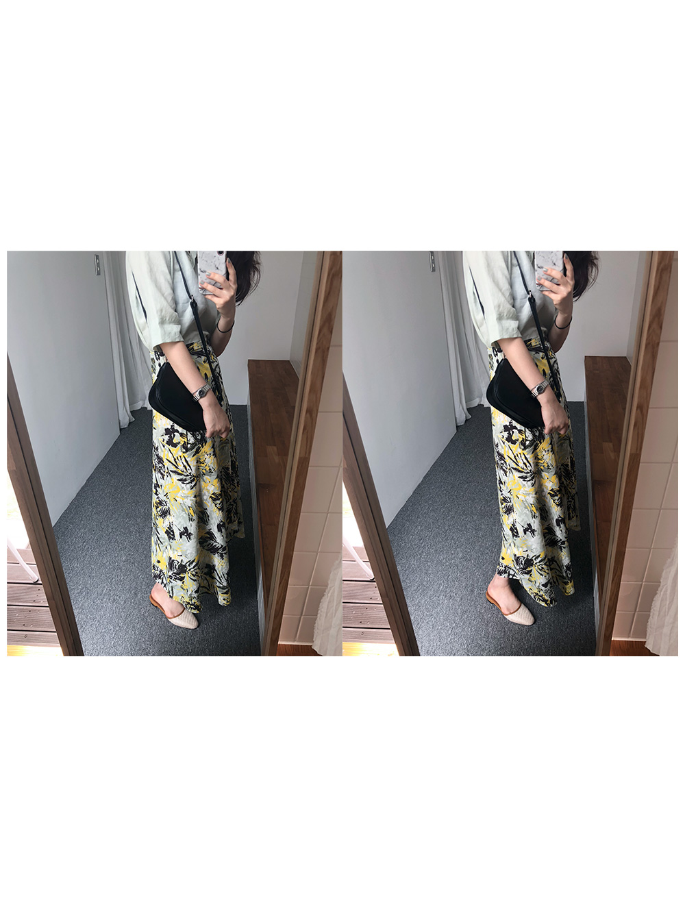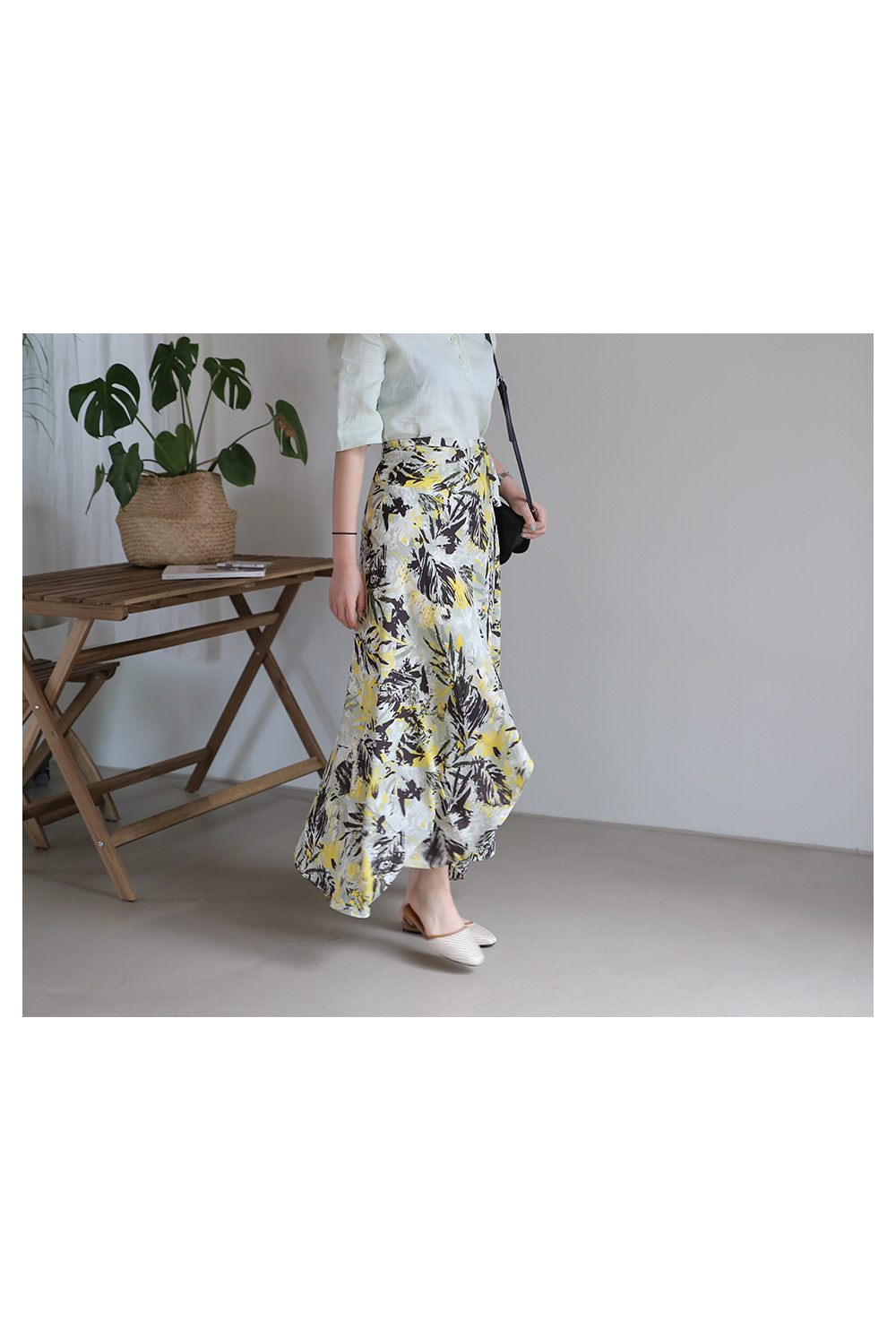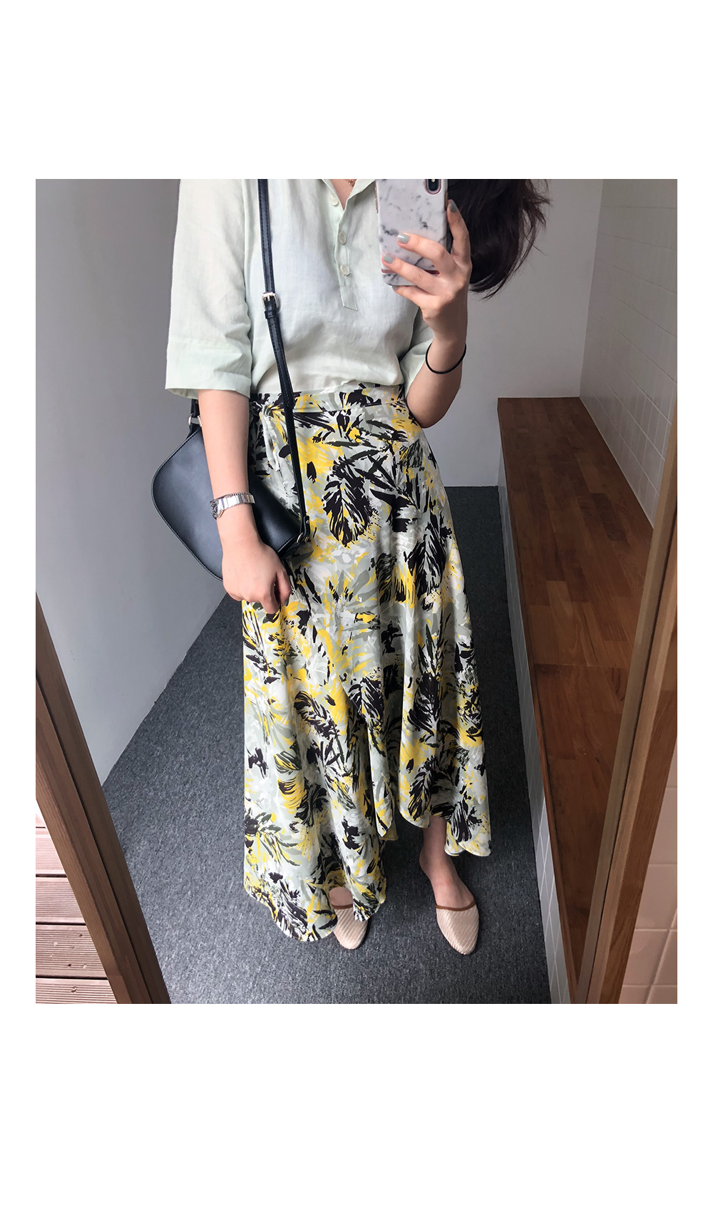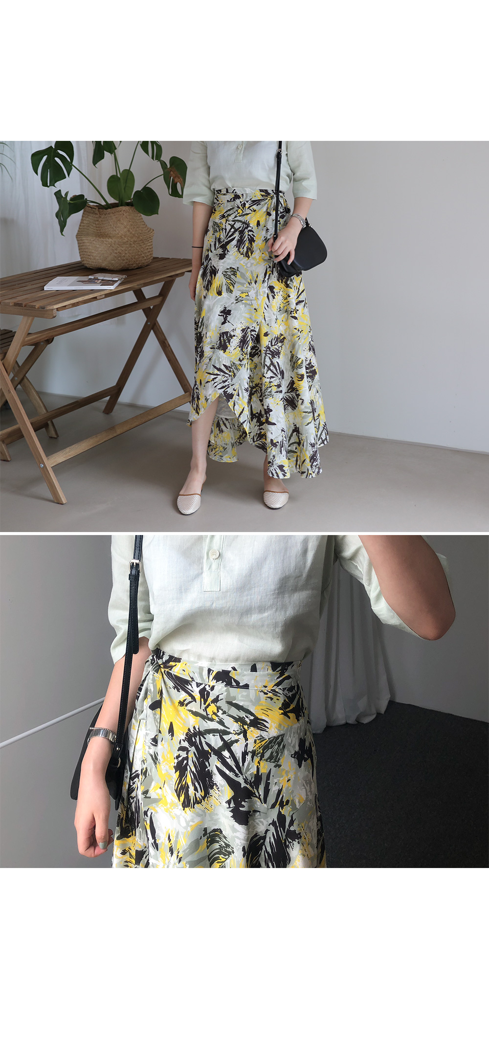 세련된 야자수 나뭇잎 프린트 랩스커트에요