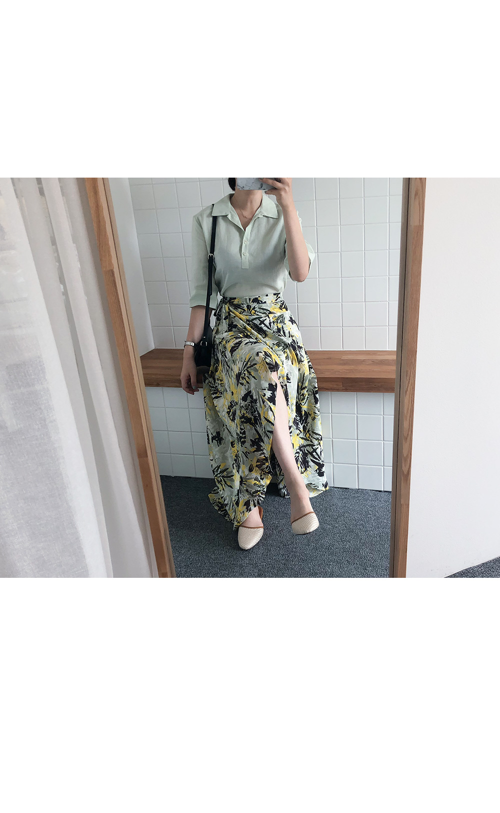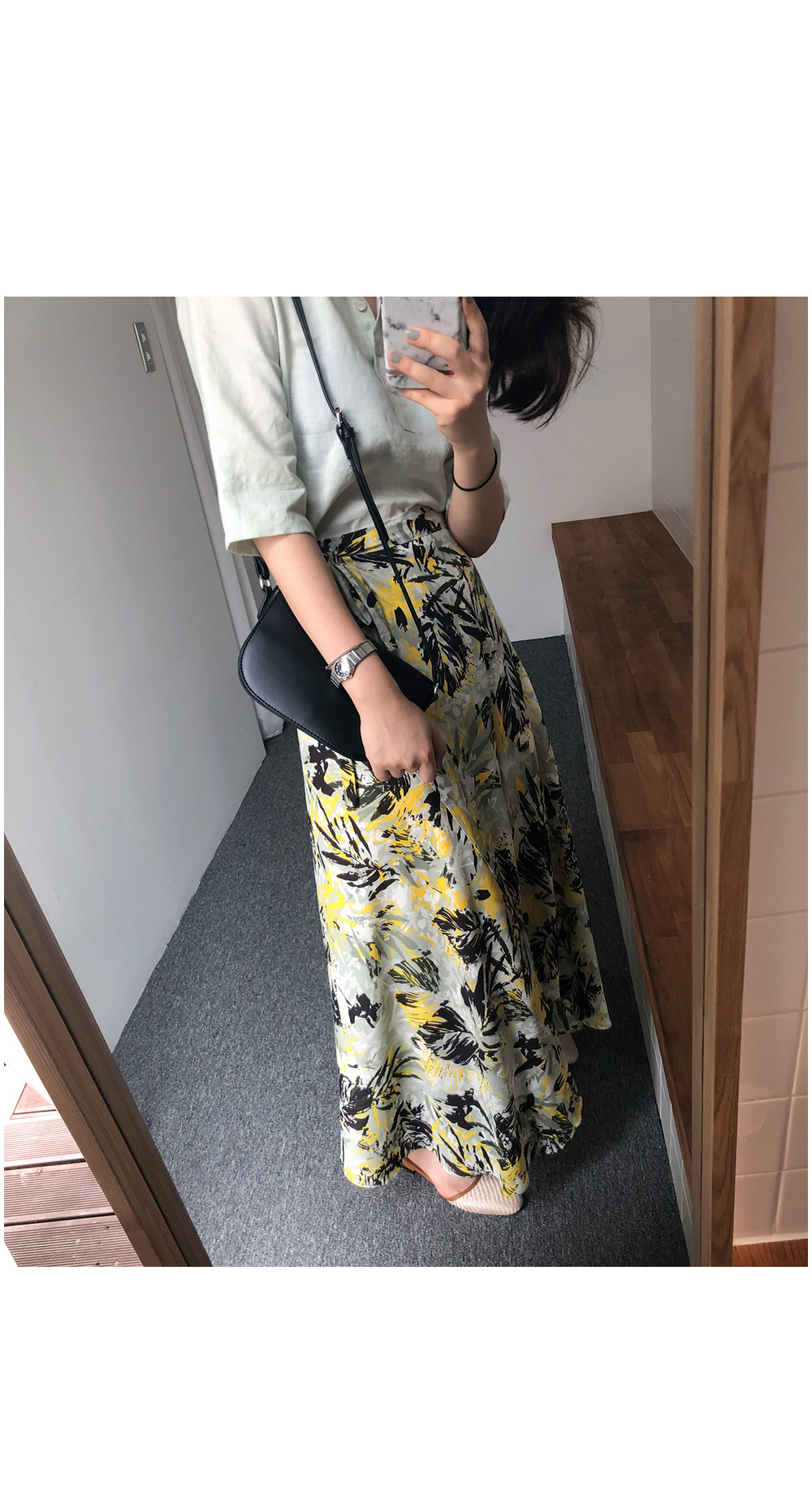 시원한 컬러감의 롱 랩스커트로 얇지만 밀도높은 조직감과 안감이 더해져 비침걱정 없이 휴양지에서도 멋스럽게 입으실수 있는 제품이에요