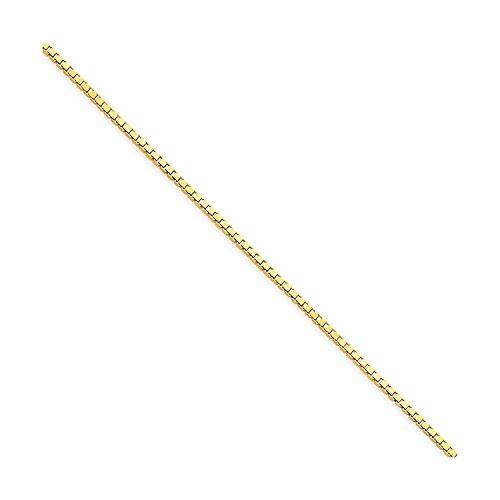 SPECIFICATIONS: Jewelry Type: Anklets, Chain Type: Box, Anklet Type: Chain Styles, Material: Primary: Gold, Material: Primary - Color: Yellow, Material: Primary - Purity: 14K, Finish: Polished, Chain Length: 9 in, Chain Width: 1.25mm, Clasp /Connector: Lobster