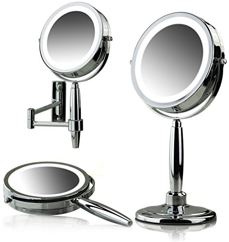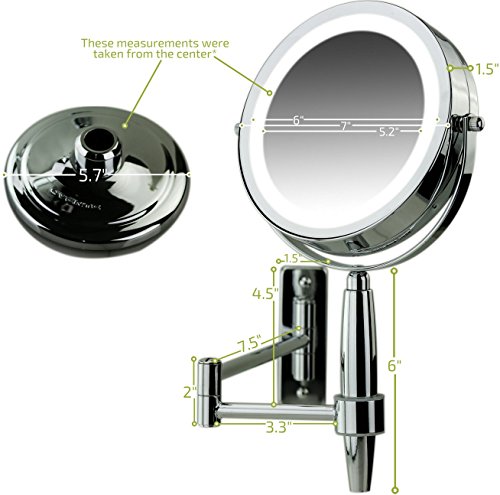 - COMPREHENSIVE – This dual-sided 360° swivel design luxury mirror features 1x8x magnification. 1x for a great view of your entire face all at once, and 8x for precision, because every detail counts (7” diameter).