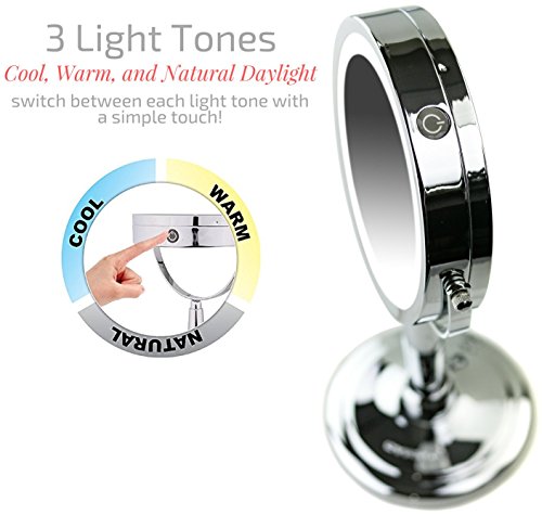 Ovente 7” Lighted 3-in-1 Makeup Mirror (Tabletop, Wall Mount, Handheld) – Battery Operated, Cordless – SmartTouch 3 Light Tones (Cool, Warm, Natural) – 1x/8x Magnification – Polished Chrome (MFM70CH)
