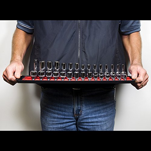 Ernst Manufacturing Socket Boss 2-Rail 3/8-Inch-Drive Socket Organizer, 19-Inch, Red