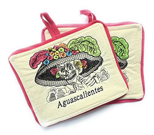 Mexican Handmade Catrina Skull Pot Holders (2, Pink) ideal to use with a mexican tortilla warmer