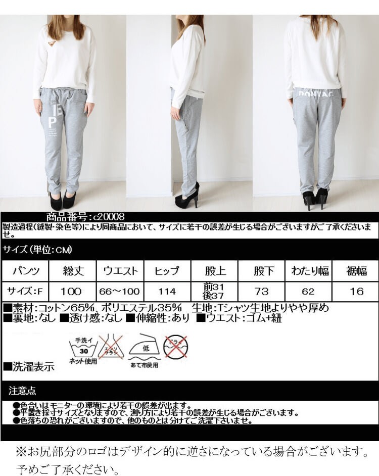 パンツ 総丈:約100cm ウエスト:約66~100cm ヒップ:約114cm 股上:約前31、後37cm 股下:約73cm わたり幅:約62cm 裾幅:約16cm |