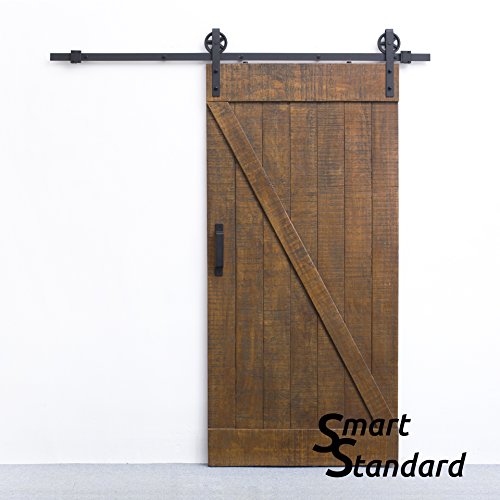 - Brand: SMARTSTANDARD; High Quality Steel; Wheel Material: Plastic; Frosted Black Surface: Door weight capacity: 170 lb-200 lb; Fit door panel width: 36''-40"; Door panel thickness: 1 3/8'' and 1 3/4''
