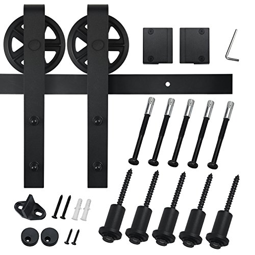 SMARTSTANDARD 6.6 FT Sliding Barn Door Hardware (Black)(Big Industrial Wheel Hanger)(1 x 6.6 Foot Rail)