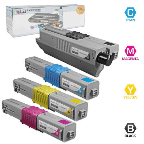 LD © Compatible Okidata Type C17 4PK Toner Cartridges: 1 44469801 Black, 1 44469703 Cyan, 1 44469702 Magenta, and 1 44469701 Yellow