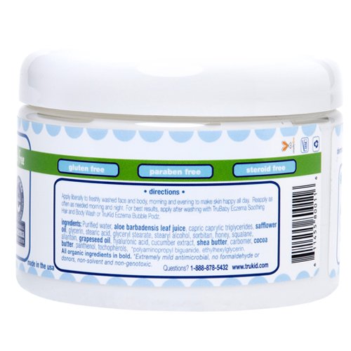 The enriching formula developed from trubaby's special blend of all-natural plant and oil extracts including allantoin, aloe, cocoa butter, and jojoba, our cream offers vital soothing power to irritated and cracked skin from eczema, rashes, chafing, and minor cuts and burns. The cream works overtime throughout the day or night with ultra moisturizing ingredients. It's fragrance free and unscented, and has been shown not to irritate even the most sensitive of skin types, our super eczema calms and comforts babies, kids and grownups. Rukid was founded by Jennifer Adams bunkers, a mother of six children, to create personal-care products for kids that use only natural ingredients and essential oils instead of bad-smelling, unhealthy chemicals. Trukid is dedicated to providing all-natural solutions to teach kids healthy habits while making parents' lives easier.Feature