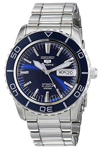 Dark blue dial with silver-tone hands and hour markers; luminous; dark blue stainless steel unidirectional bezel; silver-tone sweeping second hand; exhibition case back