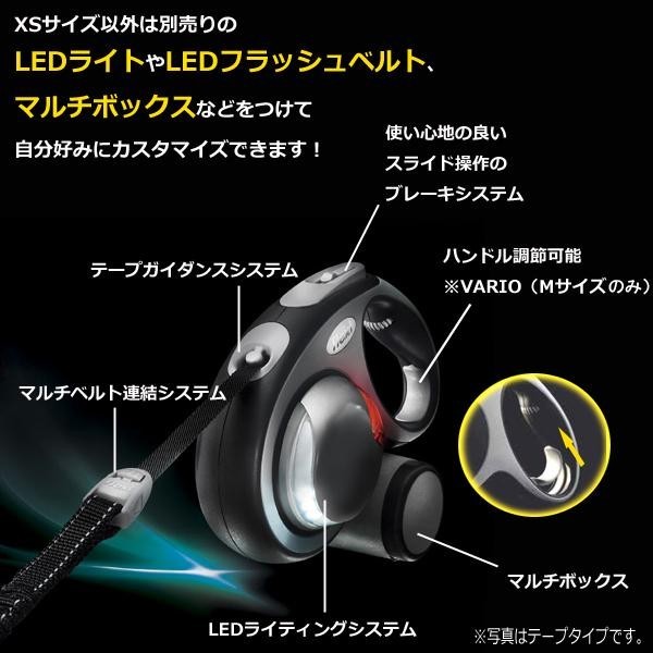 | 特許取得のワンハンドブレーキシステムによりワンちゃんの行動を自由にしながらも、片手でもコントロールがらくらくおこなえる伸縮リードです。フレキシの技術や品質はそのままに、専用アクセサリー(別売)で自由にカスタマイズが可能です。2色からお選びください。 |
