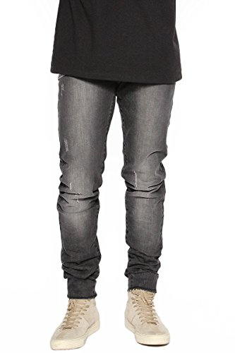 -. Feature : Stretchy denim with distressed bleached wash, comfortable fit / 006 : Zipper ankle with raw edge ; Zip fly with button closure, basic 5 pockets styling ; 32.5" inseam, 6.5" leg opening(Measured from size 32) / 005 : Low crotch, regular rise, Slant front pockets, welt back pockets Skinny fit with raw hem, ripped details Drawstring with elasticized waistband 29.5" inseam + drop crotch panel 2.5" , 6" leg opening(Measured from size 32) / Guys New Look, Street style denim pants. / 98% cotton, 2% spandex, machine wash cold