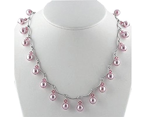 A joyful necklace with bright pink pearls and crystals hanging from a silver chain. Length: 17" Clasp: Lobster