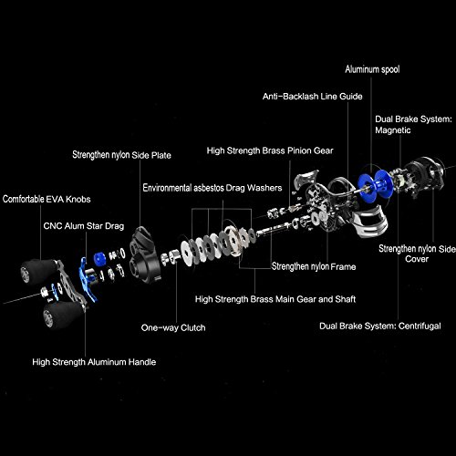 -. Binding : Misc. -. Brand : PLUSINNO -. Feature : Powerful:Precise gears paired with 3 disc high grade envionmental fiber drag washers provide an ultra-strong 16.5LBs drag system with power to handle the big ones that you are after. / Durable: CNC machined brass gear ensures the powerful drag and durability with 6.4:1 gear ratio. Fast and strong retrieve offer the ultimate fishing performance. / Smooth: 5 + 1 superior quality shielded stainless steel corrosion resistant ball bearings. These features make PLUSINNO baitcast reels the perfect fishing reel for saltwater and freshwater species. / Tough: The Baitcast Reel is mainly made of Strengthen nylon body,Aluminum spool and Stainless steel ball bearings to ensure the baitcaster's long-lasting use. / Perfect baitcast reel for almost any fishing technique - pitching, flipping, casting, and more. -. IsMemorabilia : 0 -. Label : PLUSINNO -. Manufacturer : PLUSINNO -. ProductGroup : Sports -. ProductTypeName : SPORTING_GOODS -. Publisher : PLUSINNO -. Studio : PLUSINNO -. Title : PLUSINNO Baitcasting Reels Fishing Reel 5+1 Stainless Steel Ball Bearings Strength Nylon Anti-corrosion Baitcast Reels