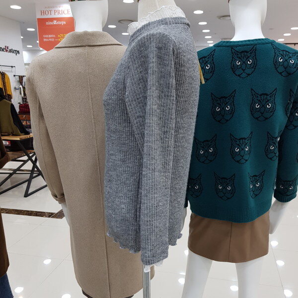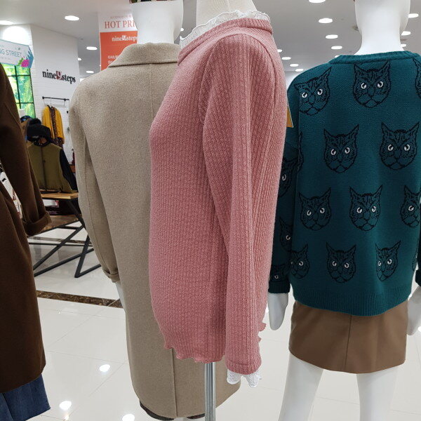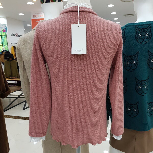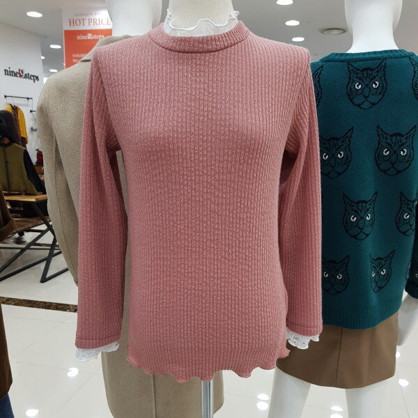 넥부분과 소매 끝부분 레이스, 밑단 물결로 사랑스러움을 살린 티셔츠입니다^^