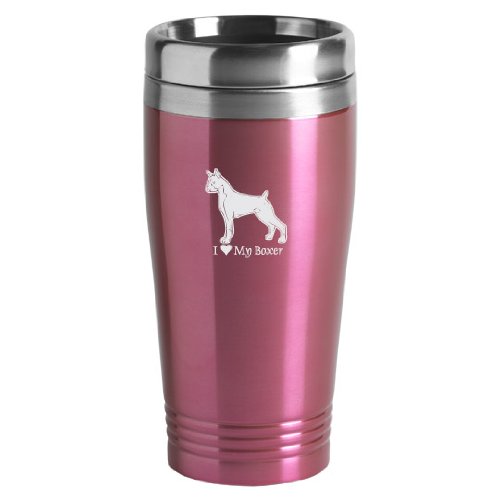 16-ounce Stainless Travel Mug - I Love My Boxer - Pink