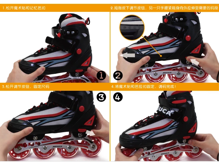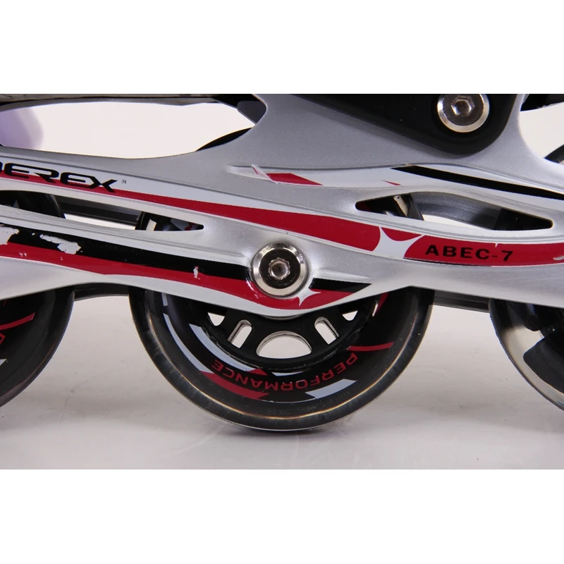 Material:semi soft boot,aluminium alloy frame,82A pu wheel with flashing light