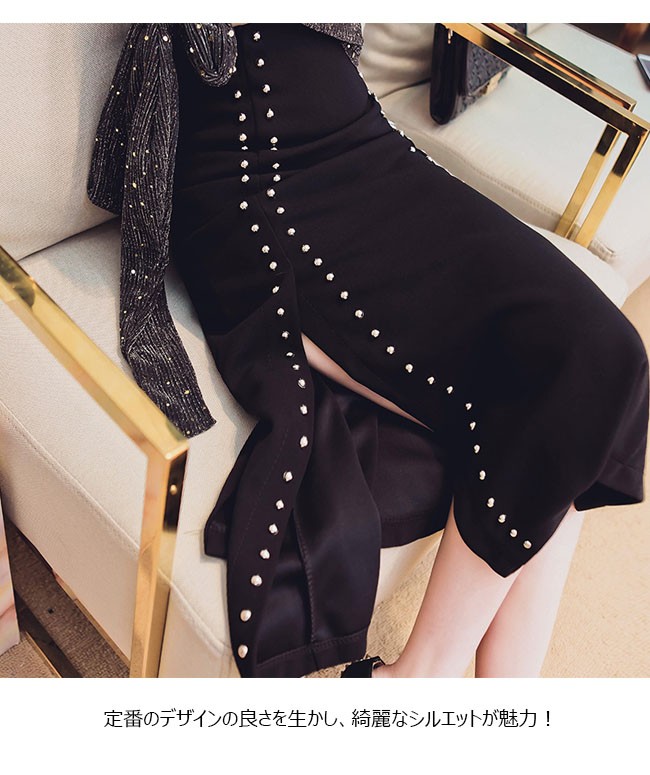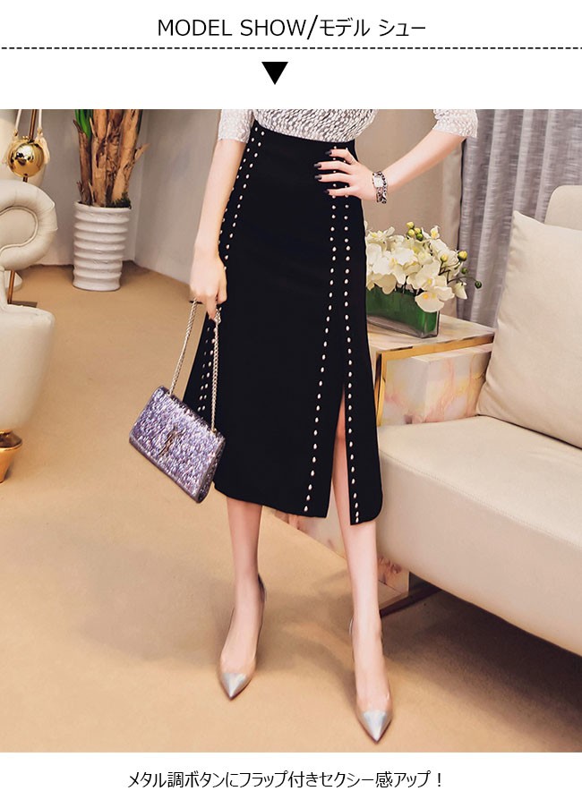 | 商品名 | タイトスカート つなぎスカート ロングスカート レディース 無地 スリット入り メタルボタン付き 着痩せ セクシー オシャレ 結婚式 お呼ばれ 2017秋新作 |