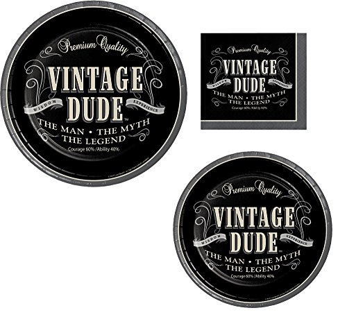 -. Feature : VINTAGE DUDE Small Party Bundle includes 8 Pack Banquet Plates, 8 Pack Luncheon Plates, and 16 Count Beverage Napkins / FEATURES Plates and Napkins with sayings about that special guy - Can coordinate with other red and black paper goods / PERFECT to mark those imporant milestones - From age 21 - 110! / PLATES are heavy duty and come in two size , NAPKINS are 2 ply / STYLISH AND CREATIVE Party Supplies from Creative Converting are the finest quality, and premium strength- makes clean up a breeze!