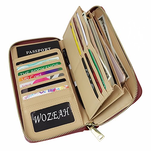 -. Title : WOZEAH Women's RFID Blocking PU Leather Zip Around Wallet Clutch Large Travel Purse