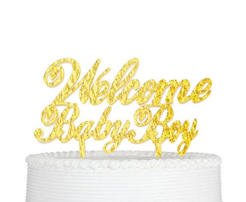 Qttier Welcome Baby Boy Cake Topper, Boy Baby Shower Birthday Premium Quality Party Decorations with Cardboard Packaging (Gold)