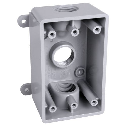 Hubbell-Bell PSB37550GY Weatherproof Box with Gang, 1/2-Inch or 3/4-Inch Outlets, Gray